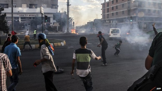 أظهرت صورا التُقطت يوم الأحد متظاهر ملثم وهو يتسلق سارية العلم داخل قاعدة عسكرية في ولاية ديار بكر، ذات الأغلبية الكردية. وتظاهر الأكراد مرة ثانية يوم الإثنين ضد خطط بناء قاعدة عسكرية جديدة في الولاية. وتوفي اثنين من المتظاهرين الأكراد يوم الأحد بعد أن أطلقت الشرطة عليهما النار في اليوم السابق له، في خضم اشتباكات بينها وبين المتظاهرين. وتصاعدت حدة الأحداث بوفاة المتظاهرين وقرار بناء القاعدة العسكرية، الذي يُعتبر تهديدا لعملية السلام. وبدأت عملية السلام عام 2012، في محاولة لإنهاء 30 عاما من المواجهات مع متمردي حزب العمال الكردستاني، التي حصدت حياة 40 ألف شخص على الأقل. وقال إردوغان إنه كون الشخص الذي ظهر في الصور شاب لا يعنيه في شيء، “فهو سيدفع الثمن تماما كما سيدفعه من أرسلوه (الشاب) إلى هناك”. وأضاف أنه أصدر أوامره لوزير الداخلية بالتحقيق في الواقعة. واستحوذت واقعة إنزال العلم على تغطية الإعلام التركي، إذ عبر عدد كبير من المعلقين عن غضبهم من هذا الفعل. وحاول زعيم حزب العمال الكردستاني تهوين الواقعة، فقال في رسالة من محبسه “إننا لا نتصرف بشكل يؤذي أيا من رموز الدولة”. واشتدت التظاهرات المعارضة لبناء القواعد العسكرية الجديدة في الأسبوعين الأخيرين. وتأتي قبيل أول انتخابات رئاسية مباشرة، والتي يُتوقع أن يشارك فيها إردوغان. ويقول مراقبون إن ضمان دعم الأقلية الكردية، وهي حوالي 20 في المئة من تعداد الأتراك، قد يكون هاما في فرص نجاح إردوغان.