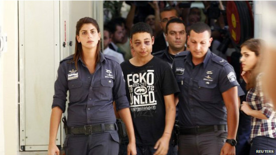 حكم قاض إسرائيلي على الفتى الأمريكي ذي الأصول الفلسطينية الذي تفيد التقارير بأنه تعرض لضرب مبرح عندما كان في قبضة الشرطة الإسرائيلية بالإقامة الجبرية لمدة تسعة أيام. وسيظل الفتى طارق أبو خضير البالغ من العمر 15 عاما -وهو ابن عم الصبي محمد أبو خضير الذي أثار مقتله احتجاجات فلسطينية غاضبة- رهن الإقامة الجبرية في منطقة بيت حانينا بالقدس الشرقية خلال التحقيقات. الشرطة الإسرائيلية تقول إنها اعتقلته لأنه شارك مع مجموعة من الفتيان الفلسطينيين في مهاجمة أفراد الشرطة الإسرائليين. لكن أسرته تقول إنه لم يشارك في أعمال الشغب التي تلت اختطاف وقتل الفتى الفلسطيني، محمد أبو خضير البالغ من العمر 16 عاما، الأسبوع الماضي. وانتقلت الاضطرابات من القدس الشرقية إلى عدة بلدات عربية/إسرائيلية أخرى بعدما خلص تشريح جثة محمد أبو خضير إلى أنه أحرق حيا. وذكرت تقارير أن السلطات الإسرائيلية اعتقلت ستة مشتبه بهم على علاقة بقتل الفتى الفلسطيني. وشارك الجمعة آلاف من الفلسطينيين في تشييع جنازة محمد أبو خضير بالقرب من منزل الأسرة في حي شعفاط بالقدس الشرقية.